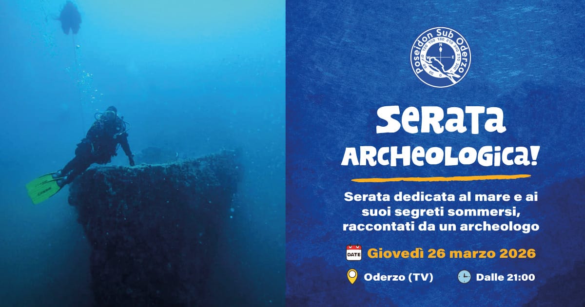 Il Club Poseidon Sub Oderzo ti invita a una serata speciale dedicata ai misteri del mare e ai suoi tesori sommersi. L’evento, organizzato da Giorgia, socia e istruttrice del club, è un’occasione unica per scoprire segreti del mondo subacqueo attraverso gli occhi di un archeologo esperto. Data e ora: Giovedì 26 marzo ore 21:00 – […]
